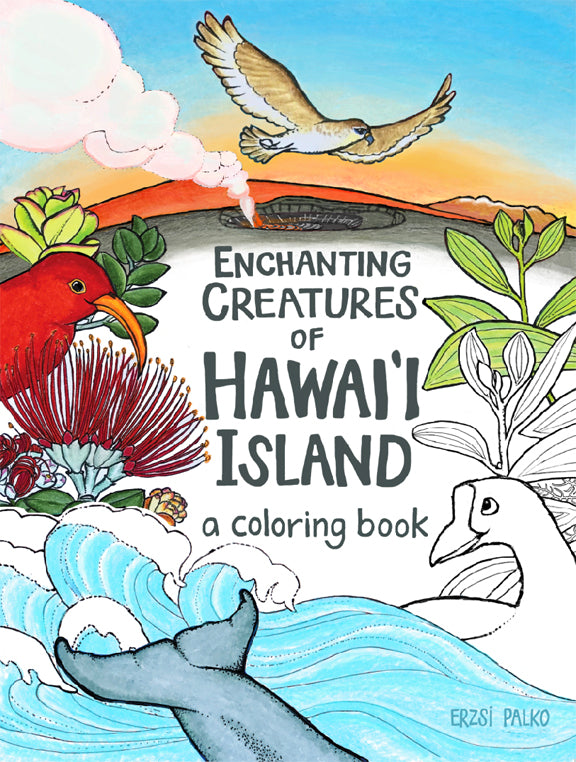 Enchanting Creatures of Hawai'i Island takes you and your family on a journey—through hand-drawn coloring pages, fun ecological facts, and whimsical rhymes—meeting native Hawaiian creatures and plants from the island’s volcanic slopes down to the sea. Hawai'i Island, aka “the Big Island,” is not only home to active volcanoes, but also to delightful forest bird species found nowhere else on earth — including the 'oma'o, 'akiapola'au, Hawai'i 'akepa, Hawai'i 'elepaio, and 'alawi.